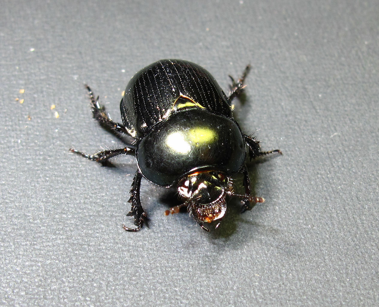 なんせ生きているオオキバセンチコガネなんて見たことありませんから。なので、「全くの想像ですが」と前置きして、「センチコガネに近い仲間なので、日本のセンチコガネのようにオスがメスに乗っかって交尾をします(写真4枚目)。その時にメスに逃げられたり、他のオスに押しのけられたりしないように、オスはメスの首筋をこのオオキバでガッチリ挟み込んで、絶対に離れないようにしているのではないか。」などとお話ししてたんですが・・・。