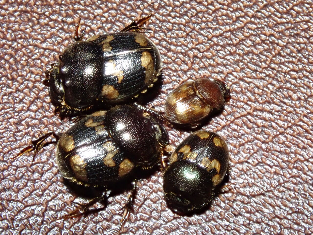 たしかに、教えてもらった場所に行くと、フツーにいました。イネ科の草が表面を覆ってますが、海岸沿いなのでピンセットで簡単に掘れるほどサクサクの砂地で、適当な犬糞にはほとんどミツコブエンマコガネが来てました(写真3枚目)。揖保川の河川敷ではカドマルエンマコガネもたくさん来てましたが、ここは波の荒い日はしぶきがかかるような場所だからか、カドマルエンマコガネは1匹もいませんでした。