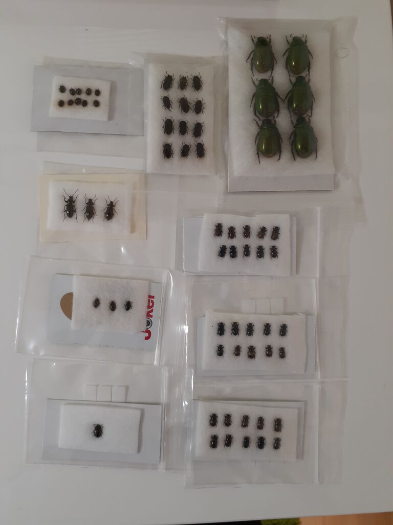 開けたらビックリ玉手箱。丁寧に展足された小さな虫たちがいっぱい!ほとんどが見たことの無いコガネムシやゴミムシ、ゴミムシダマシ(?)など名前も知らないムシでした。採集地が九州のものが多かったせいというよりは、私の無知のせいかもしれません。台紙に貼って早速標本箱に並べようと思います。プレゼントを提供してくれた小林様、コガネムシ研究会事務局の皆様、ありがとうございました!!!