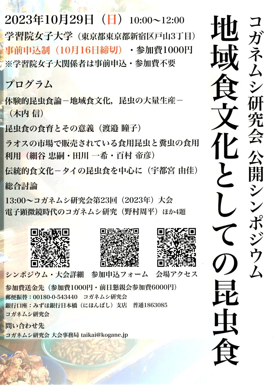 10:00~12:00 公開シンポジウム 「地域食文化としての昆虫食」