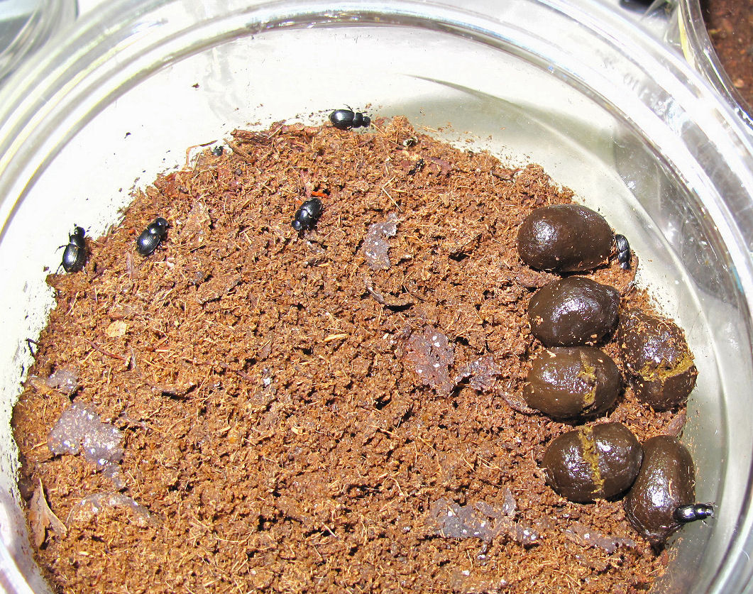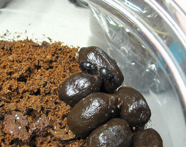 それにしても、足元にはシカ糞のマットが厚く敷き詰められた状態でありながら、新しいシカ糞の投入をきっかけに一斉に交尾行動を起こしたことには驚きました。クロツヤマグソコガネにとって、新鮮なシカ糞はオスを元気付け奮い立たせる何か媚薬のような成分が含まれているのかもしれません。