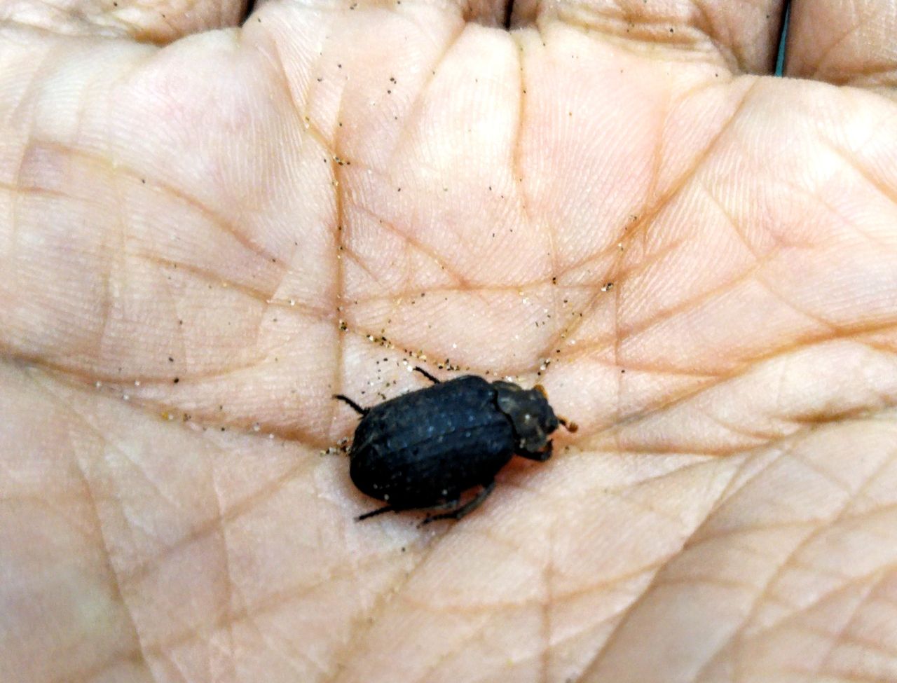 私は大変な糞虫好きですが、コレクターではないので、珍しい種類の標本はあまり持っていません。ダイコクコガネですら自分で採ったことがないので、超糞虫好きの九州大学の学生さんに借りて展示しているくらいです。なので、長野の師匠に送っていただくまでは、『日本産コガネムシ上科図説(食糞群)』で最希少種とされているオオコブスジコガネ(★★★★★)なんか、当然見たこともありませんでした。師匠に生息環境や飼い方のコツを伝授していただき、不思議な鳴き声に耳を傾けたりして、楽しく観察してました。でも、この種の出現期は5~9月と記載されており、南方系のコブスジコガネとの説もあって、季節に関係なく産卵し幼虫も育ちますが、冬になると成虫も幼虫も死んでしまうらしいのです。とすれば、ウチのも幼虫が育っているかも・・・。というか、鳥の羽根をよく食べてはいるし、じょりじょりと砂を掘っている音が聞こえたり、鳴き声が聞こえたりはするのですが、姿が見えない。砂の中にまで羽根を引きずり込んだ残骸も多数確認できており、もしかしたらという期待もありました。