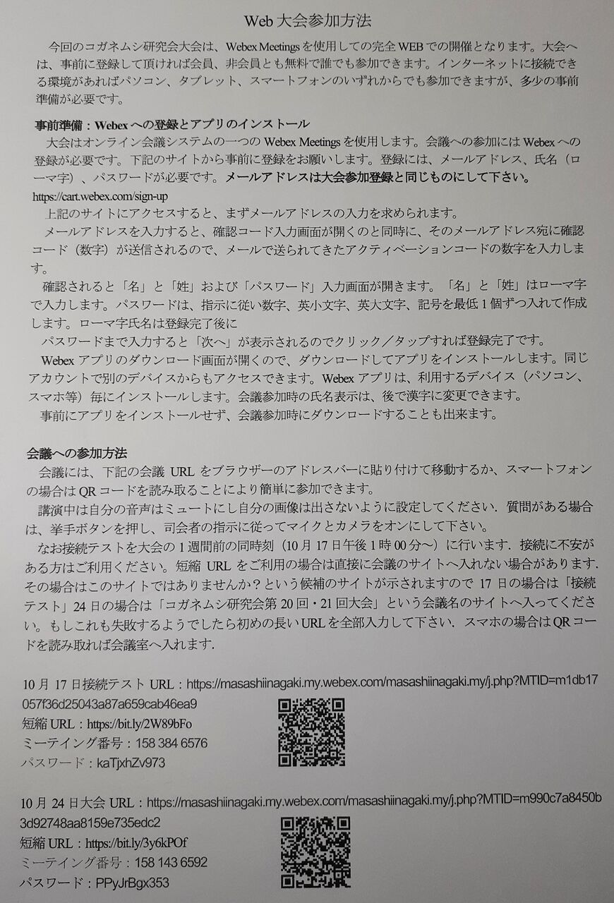大会および懇親会への参加は,現地参加およびオンライン参加とも,10月16日(月)までに大会参加登録フォーム(https://docs.google.com/forms/d/e/1FAIpQLSejY9UDEvWykEK3eeIrHBpP-lxjHO-jFCr7zGiBLeU81YbWGA/viewform?usp=sf_link)から事前登録(必須です)して頂くとともに,10月18日(水)までに郵便振替あるいは銀行振込による参加費,懇親会費の払い込みをお願いします.