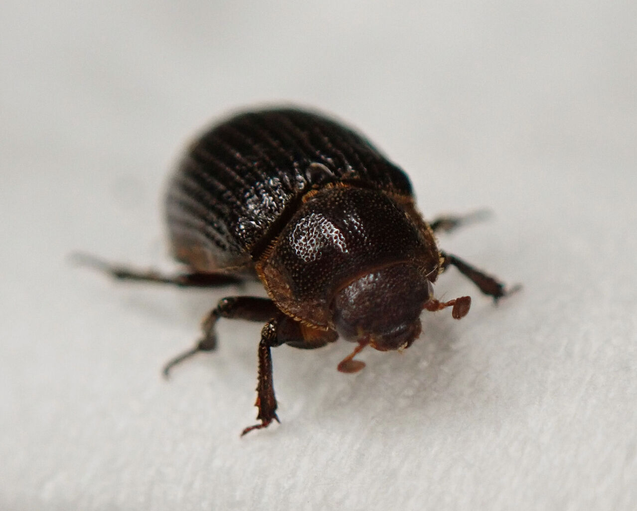 ケースにはコバエ防止の目の細かいネットを被せており、餌の羽毛や鹿毛は冷凍保存のものを与えているので、外部からの虫の侵入は考えにくいです。2019年の夏頃、卵やふ化直後の幼虫を撮影しているのですが、それと比べても大きな違いは見られません。状況からすると、コブナシコブスジコガネの卵ということになりますが、ただ、この季節に卵を産みますかね?60匹もいて2個だけというのも少し引っ掛かります。とりあえず、埋め戻して様子を見ることにしましたが、暖かい日が続いたりエアコンを入れたりで、間違って産んだのかもしれませんね⁉ でも、室温が20度を超えるのは、土日の午後の数時間だけで、平日5~10℃くらいしかありません。コブナシコブスジコガネは比較的低温でも産卵するのでしょうか。そういえば最初に長野の糞虫好きの方から送られてきた時には、成虫と一緒にすでに成長した幼虫も何匹かいたので、自然界でも春のまだ肌寒い頃から産卵する可能性も否定できない気もします。今後に注目です。