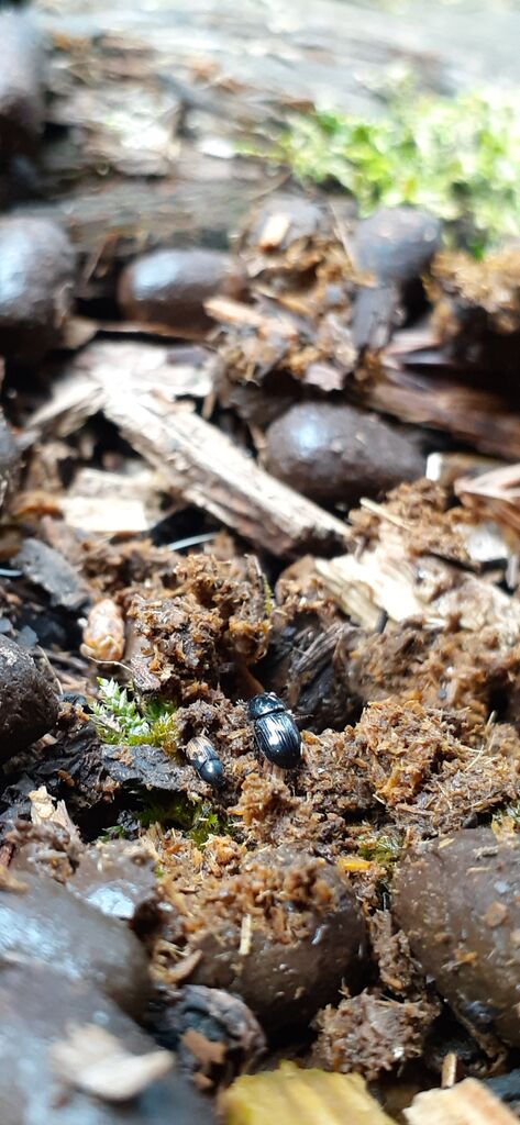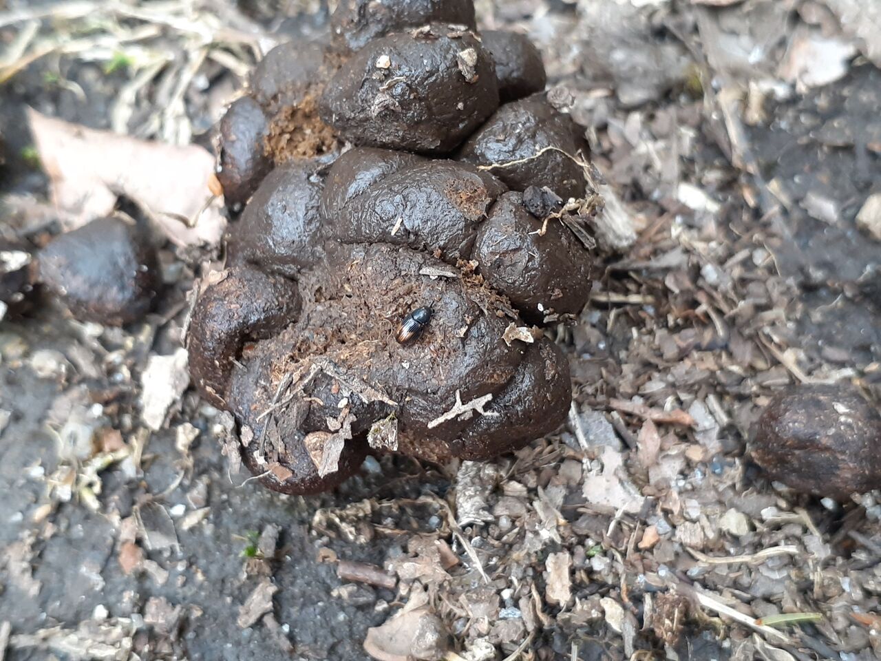 私はサラリーマンは辞めましたが、今も平日は仕事をしていることが多いです。仕事で奈良県のあちこちに行く機会が多く、その先々で糞を見つけてはひっくり返して楽しんでいます。先日は宇陀方面に行った帰りに、僅かな時間ではありますが、牧場に立ち寄りました。この牧場は、初めて行った時にマルツヤマグソコガネを採集するという幸運に恵まれた(写真1枚目)、相性のいい牧場です。