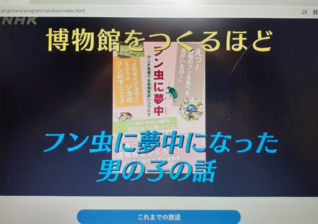 先月放送されたNHKの『へんてこ生物アカデミー』ですが、大変好評で多くのリクエストが寄せられたとのことで、早くも9/7(日)に再放送されることになりました! NHK総合で午後3:48~5:00、さらにNHKプラスでの配信もあるとのこと。私的にはこの番組はへんてこ生物の紹介映像は面白いのだけれど、解説が少なくやや浅いとの印象でした。でも「フンコロガシ」に限っては時間はたっぷり確保されていたし、ケニアに住んで糞虫を観察していた佐藤宏明先生の解説もあって、とても良かったと思っています。日本最小(約2㎜)にして本州唯一のフンコロガシ「マメダルマコガネ」で番組をあそこまで盛り上げたディレクターさんの手腕にも拍手。糞虫が今まさにメジャーになろうとしている(?)世の中のトレンドにマッチした構成になってました。